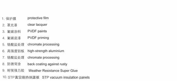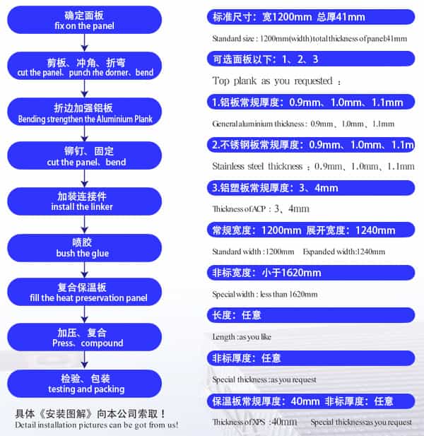 金屬裝飾保溫板,年產量50萬m2。采用西南鋁3004、5052系列高強度鋁鎂錳合金防銹鋁板,或韓國項浦不銹鋼板、防火A級STP真空絕熱保溫板、美國DUPONP膠水、美國PPG 70%以上氟碳涂料、法國諾凡爾塞保護膜,為優良品質提供了足夠的保證!屬于國家建設部節能省地型建筑推廣應用技術項目,同時為《金屬飾面保溫板國家標準》受邀制定起草單位,并擁有自主開發知識產權。已被國內多家重點工程所采用。